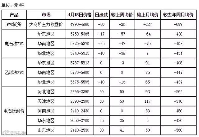 备注:电石法PVC华北地区及乙烯法PVC华东为送到价,PVC其余市场价格均为出库自提价。