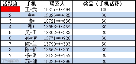 我们会公布下周活跃用户排名!兴许您的努力也会获得收获。