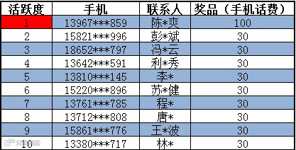 我们会公布下周活跃用户排名!兴许您的努力也会获得收获。