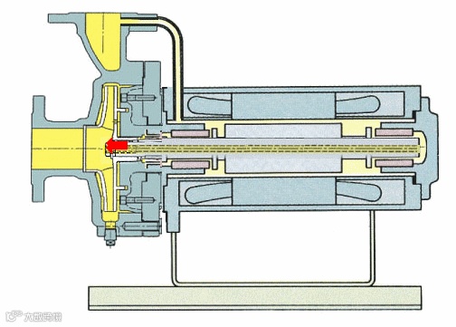 普通离心泵的驱动是通过联轴器将泵的叶轮轴与电动轴相连接,使叶轮与电动机一起旋转而工作,而屏蔽泵是一种无密封泵,泵和驱动电机都被密封在一个被泵送介质充满的压力容器内,此压力容器只有静密封,并由一个电线组来提供旋转磁场并驱动转子。这种结构取消了传统离心泵具有的旋转轴密封装置,故能做到完全无泄漏。