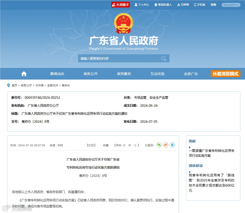 信息来源:广东省人民政府办公厅关于印发广东省专利转化运用专项行动实施方案的通知 广东省人民政府门户网站 (gd.gov.cn)