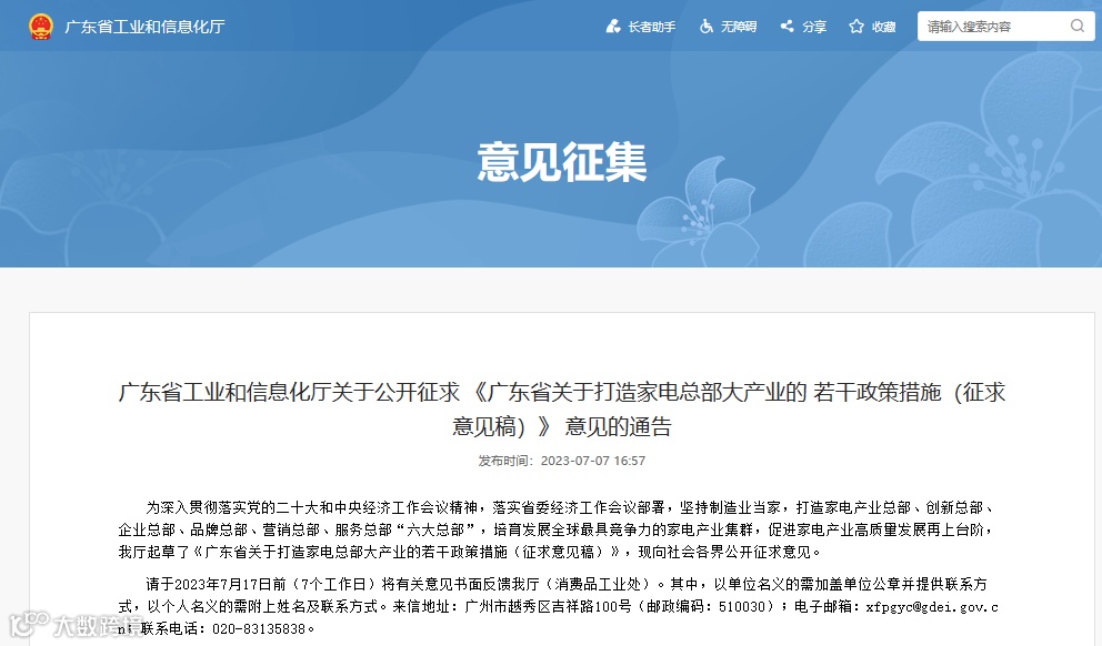 1. 广东省关于打造家电总部大产业的若干政策措施(征求意见稿)