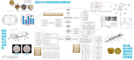 青稞是西藏第一大粮食作物,富含γ-氨基丁酸(GABA)、β-葡聚糖等功能成分,但存在纤维含量高,加工性能差,添加量有限,传统加工手段容易破坏营养成分等应用瓶颈。本项目针对上述行业共性难点和痛点,从原料高值化利用、营养组成、活性物质和生理消化特性进行全面系统研究,采用现代工程技术手段研发兼具西藏青稞营养成分和粤式糕饼精美特征的青稞点心及加工装备。以低水分含量粤式杏仁饼为代表,发明了一种熟粉饼的快速加工方法及装备,不改变配方组成,通过调控加工过程的导湿性和导湿温性加速糕饼内部水分的转移,在节约烘焙成本的同时,解决熟粉饼常见的破损率高问题。针对戚风蛋糕为代表的高水分产品,通过调控微波预膨发结合热风烘烤,在改善高含量青稞粉料不易膨发问题的同时,显著缩短烘焙时间,降低能耗。项目成果围绕核心专利,进一步发明了富含γ-氨基丁酸的高得率熟化青稞全粉生产方法,拓展了富含青稞的含馅中式蒸包开发技术。项目可以拓展到高纤维、低GI的谷类、豆类等广泛原料的开发应用,前景广阔。