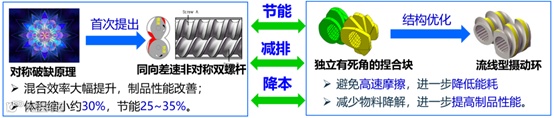 双螺杆挤出机是塑料加工过程中非常重要的技术装备,承担物料的熔融塑化、混 炼、排气及挤出加工等任务。传统的双螺杆挤出技术存在能耗高、排放高、塑料熔体在加工过程中易发生剪切降解等问题,且目前其单位长度混炼能力已达理论极限。基于上述问题,本项目据对称破缺效应,从加工原理入手,对双螺杆挤出机的螺杆结构不断进行创新性突破性研究,推导出双螺杆造型的解析方式组,首次提出同向差速非对称双螺杆挤出新技术。该技术将对称破缺效应、混沌混合及拉伸力场作用引入到双螺杆塑化熔融混炼加工全过程中,大幅度提升了塑料挤出加工中的熔融混炼效率,制品性能提升,且节能25~35%。同时本项目基于该技术提出具有优异塑化混炼效果的新型的螺纹元件-摄动环,彻底解决传统捏合块元件局部支撑不稳定导致的侧向间隙 变形而产生的干摩擦、高能耗、物料降解等问题,实现双螺杆挤出加工技术的创新性突破。该技术显著提高了塑料挤出加工生产效率、降低生产成本,实现螺杆流线型全程自洁结构的全新突破。围绕该技术,培育产出差速双螺杆挤出装置及加工方法等专利20余项, PCT申请6件,并获得美国和印度专利授权。该技术已成功应用于高性能填充体系和共混体系的制备,通过专利许可方式与多家塑料机械企业合作进行产业化推广,创造良好经济和社会效益。
