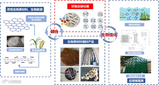 本项目是基于好氧反硝化菌及生物材料和装置构建同步硝化反硝化体系,实现含氮污废水和废气的高效治理。生物脱氮具有高效、低成本、操作简单和对环境无污染等特点,是环境领域最常用的技术。常规生物脱氮是自养好氧硝化细菌将氨氮氧化为亚硝酸氮和硝酸氮,之后由异养厌氧反硝化细菌将亚硝酸氮和硝酸氮氧化为氮气,需要分段式处理。与厌氧反硝化菌不同,好氧反硝化菌在一定溶解氧下,不影响反硝化过程电子传递以及相关反硝化酶的活性,并具有更高代谢与活性却,它在脱氮界就像是一种全能的战士,具有以下几个优点:(1)有助于构建同步硝化反硝化。利用好氧反硝化菌的生物增强作用可以构建在同一个反应器中实现同时发生硝化反硝化,减少设备构筑,节省占地面积;较少或无需回流量,节约电耗;生长快,脱氮效率高。(2)较强的生物环境适应能力。其表现出在振荡溶解氧环境、高低温、高盐等环境胁迫下具有高度适应能力,依然能发挥高水平的脱氮能力。(3)可利用多种氮源、碳源,促进水体COD和总氮同时达标。