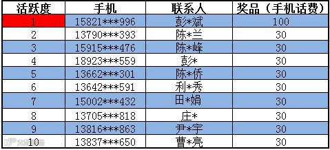 我们会公布下周活跃用户排名!兴许您的努力也会获得收获。