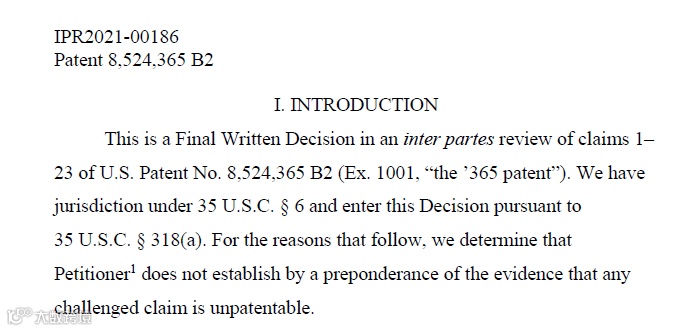 部分判决结果(IPR2021-00186)