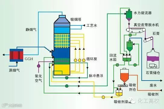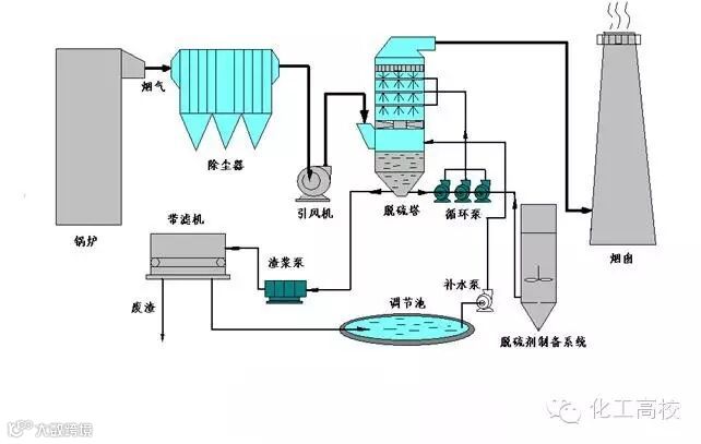 双碱法脱硫系统-湿法脱硫工艺流程图