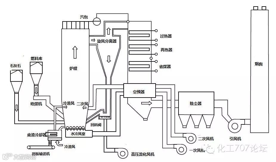 主要由燃烧器、分离器、回料系统、布风装置主要装置组成。