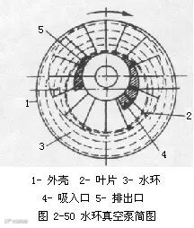 (1)液环真空泵 用液体工作介质的粗抽泵称作液环泵。其中,同水作工作介质的叫水环真空泵,其它还可用油、硫酸及醋酸等作工作介质。工业上水循环泵应用居多。