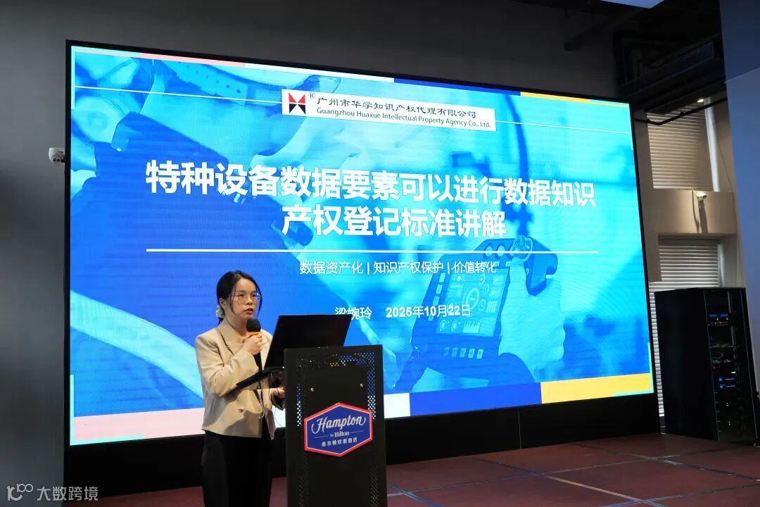 我司项目管理部副总经理梁婉玲、总经理助理温建梅应邀出席本次活动。梁婉玲副总经理围绕“特种设备数据要素可以进行数据知识产权登记标准讲解”这一主题,发表了主旨演讲。她精准聚焦特种设备领域,结合行业特点与实际案例,深入解析了可登记数据知识产权的具体标准与登记路径,内容详实、逻辑清晰,获得了现场与会人员的广泛好评。