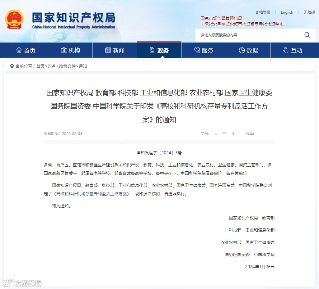 为做好高校和科研机构(含部分高水平医院)存量专利盘活工作,持续做优专利增量,加快专利转化和产业化,国家知识产权局等8部委近日联合印发《高校和科研机构存量专利盘活工作方案》。