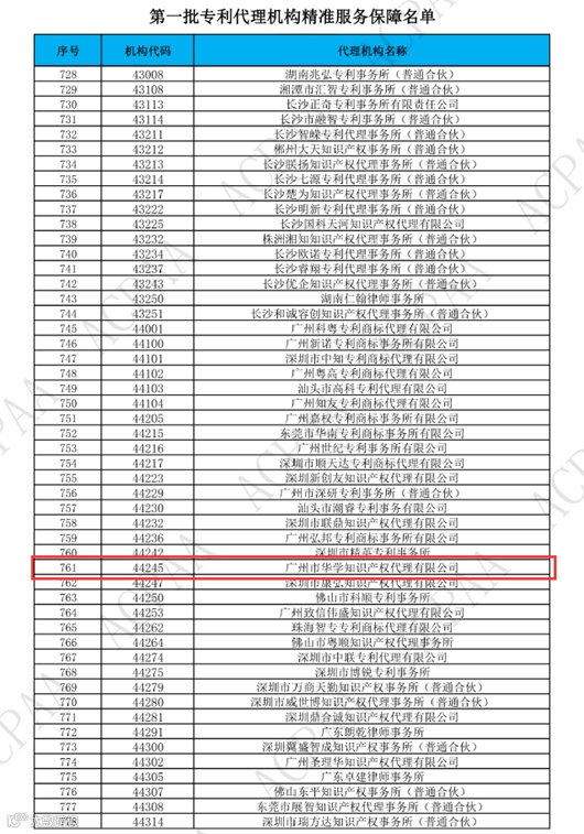 近日,中华全国专利代理师协会开展优质专利代理机构遴选工作,旨在推选信用良好、专业能力强、恪守行业规范的机构,促进优质服务资源对接。经机构自主申报、协会严格筛选,华学成功入选第一批专利代理机构精准服务保障名单!