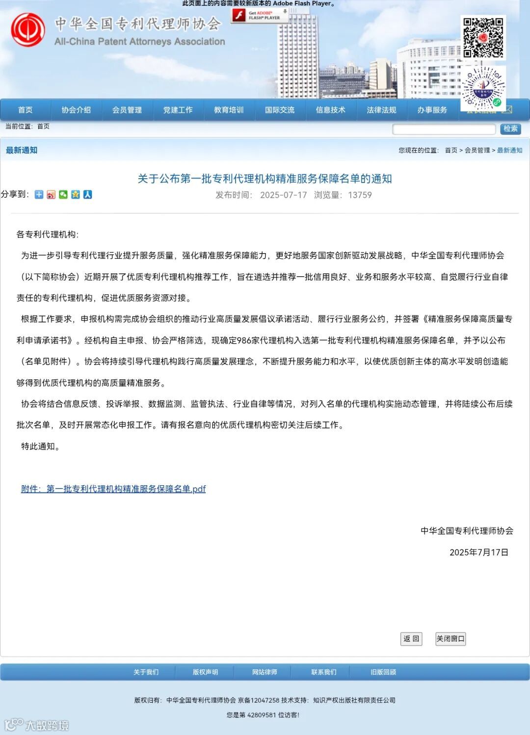 此次入选不仅是对华学专业服务能力与行业信誉的高度认可,也体现了华学在知识产权代理领域的卓越表现。作为首批获选机构,华学将继续秉持高质量服务理念,严格遵守行业规范,深化精准服务能力,助力创新主体实现高水平专利布局,为客户提供更加专业、高效的知识产权服务!