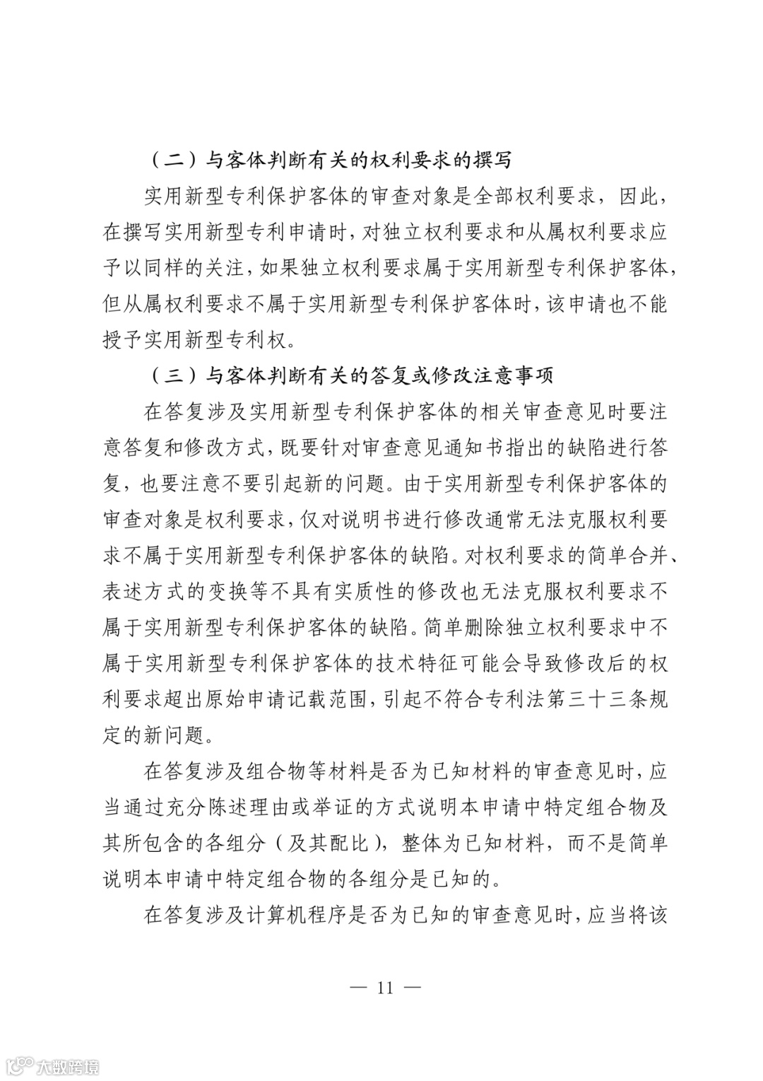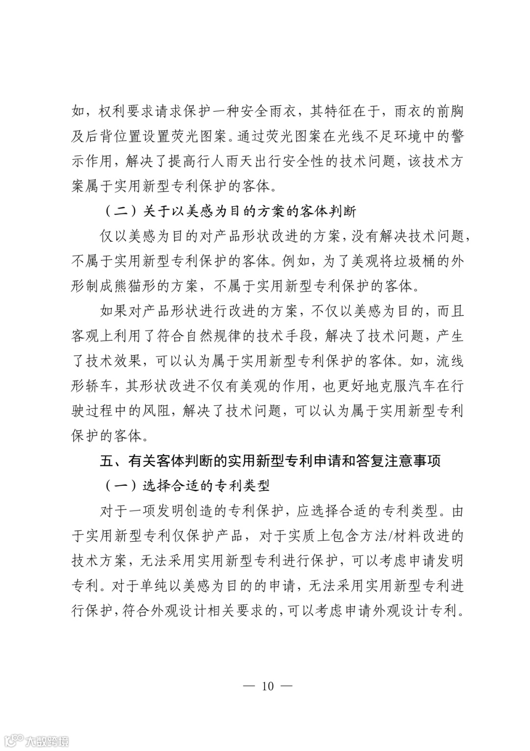 五、有关客体判断的实用新型专利申请和答复注意事项