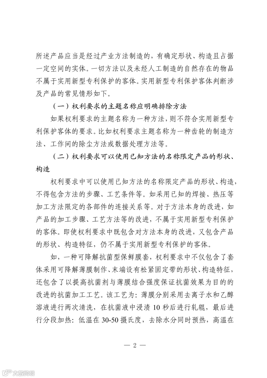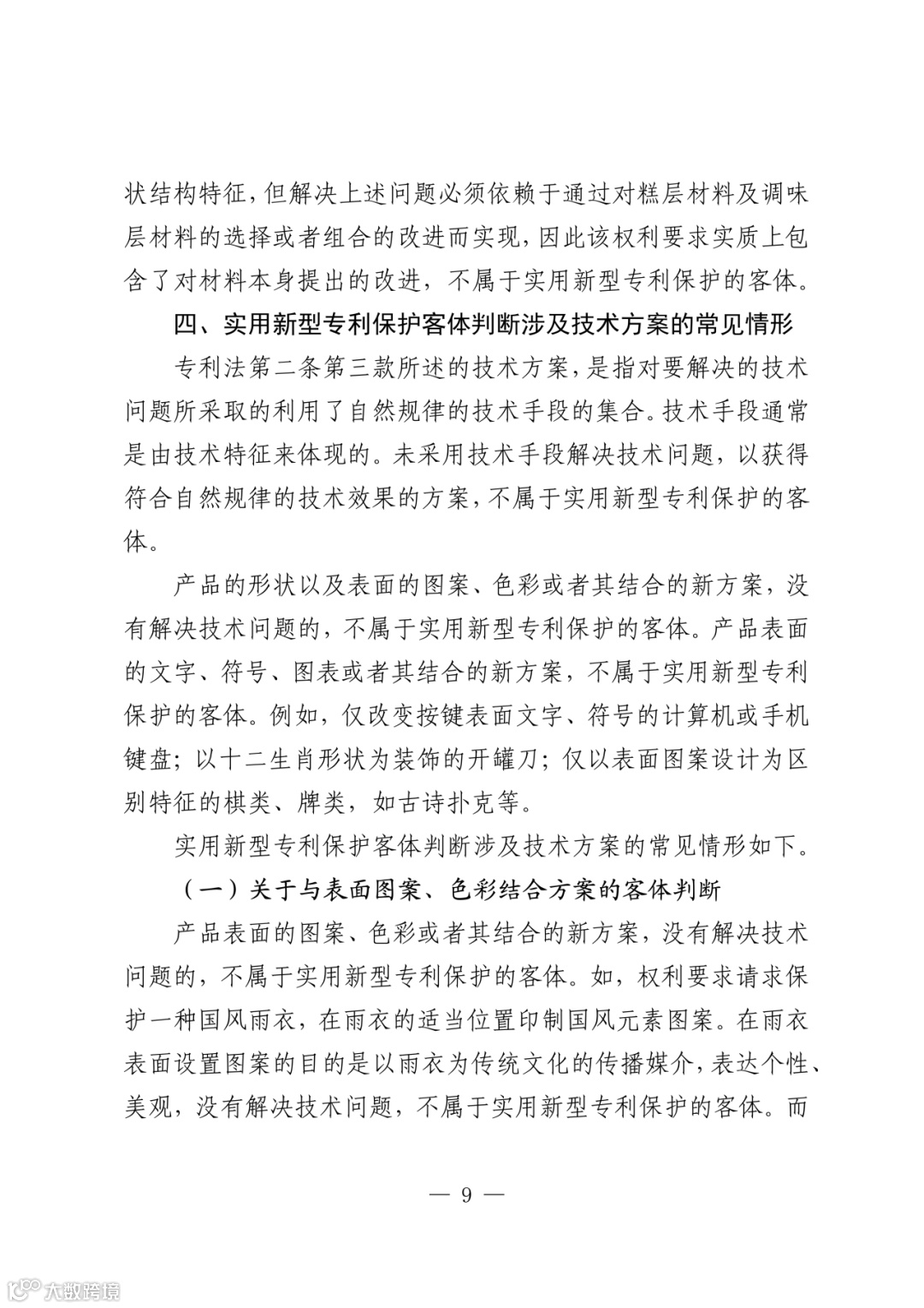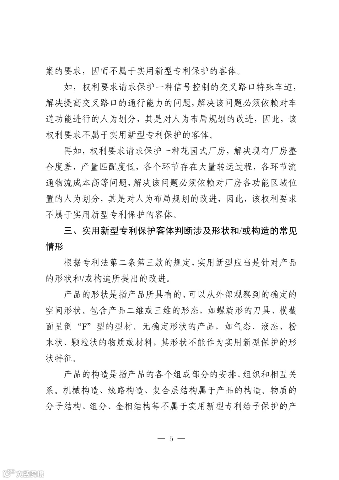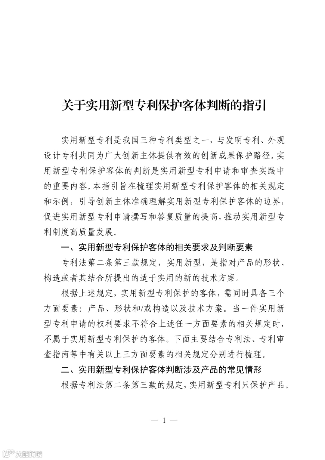为深入贯彻落实《“十四五”国家知识产权保护和运用规划》任务部署,加强知识产权源头保护,强化知识产权申请注册质量监管,引导创新主体准确理解实用新型专利保护客体的边界,促进实用新型专利申请撰写和答复质量的提高,推动实用新型专利制度高质量发展,国家知识产权局组织编写了《关于实用新型专利保护客体判断的指引》,供相关创新主体参考使用。