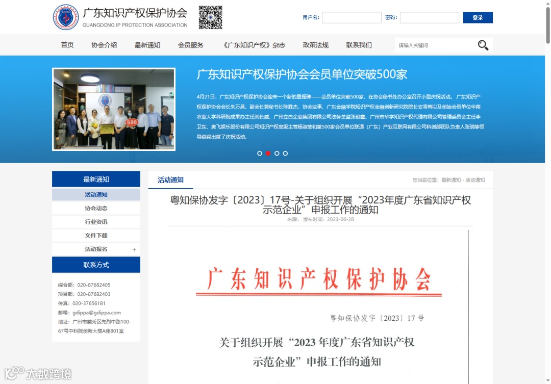 为持续推进我省“知识产权强企”培育工作,进一步提升企业知识产权创造、管理及运用能力,激发企业在知识产权创新中的主导作用,推动企业高质量发展,在广东省市场监督管理局(知识产权局)的指导下,广东知识产权保护协会现启动“2023年度广东省知识产权示范企业”的组织申报和评定工作,有关事项通知如下: