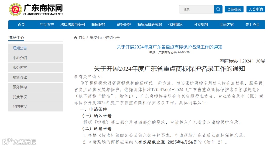 信息来源:关于开展 2024 年度广东省重点商标保护名录 工作的通知_广东商标协会 (gdta.com.cn)