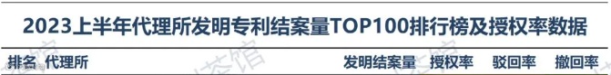 近日,专利茶馆与江苏省舜禹信息技术有限公司基于Himmpat数据库统计分析,联合发布了《2023年上半年发明专利结案量100件以上代理所授权率排行榜》。该榜单统计截至6月30日的专利代理数据。