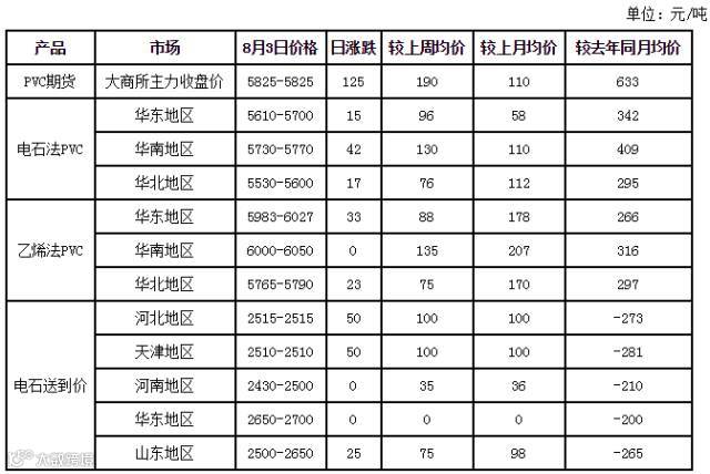 今日PVC生产企业报价继续拉涨,期货跟随走高。环保督查下,电石紧张局面持续,PVC企业货少挺价意向坚决,短期市场低价继续减少,预计价格仍将继续走高。预计明日5型普通电石料,华东市场主流自提报价在5650-5750元/吨,华南市场主流自提报价在5740-5770元/吨。