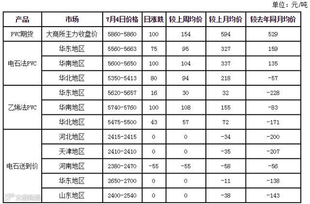 今日国内PVC期货继续冲高,涨幅超过150元/吨,突破5800元/吨后向5900元/吨逼近。受期货高涨带动,现货PVC市场经销商报价持续上涨,华东、华南上午涨50元/吨后,下午报价再度调涨50元/吨。