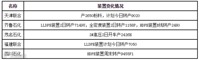 国内PE装置转产情况统计