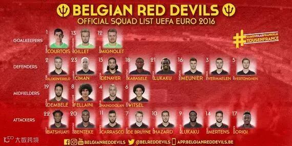 门将:1-库尔图瓦(切尔西)、13-吉莱(梅赫伦)、12-米尼奥莱(利物浦);