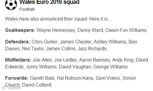 前锋:贝尔(皇马)、沃克斯(伯恩利)、切尔奇(