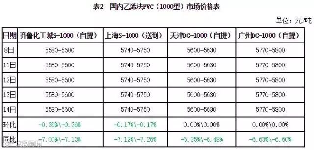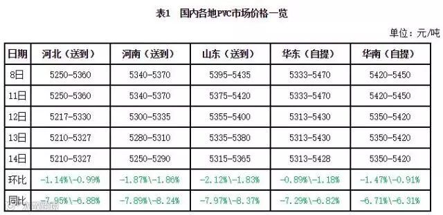 1. 本周PVC市场价格对比