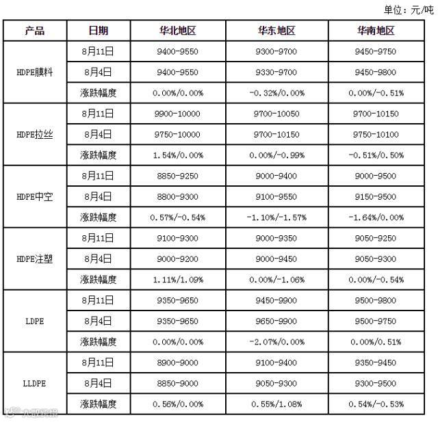 国内各地PVC市场价格一览表