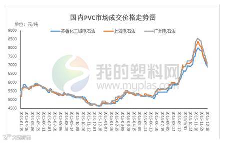 本周国内PVC市场大跌后企稳。周初市场看空氛围蔓延,PVC企业报价意义不大,对合同户执行按量商谈方针,商家继续套现出货,实盘成交一单一谈,市场报价商谈空间较大。下游工厂受雾霾及环保督查限制局部处于半停工状态,对PVC需求量减少,实际接货小单刚需。部分有年前存货意向,但多在等待时机。本周五西北氯碱联合体再次召开保价会议,市场炒作氛围再次凸显,华东、华南报价小涨50-100元/吨上下,实盘商谈空间较小。下游询盘量增多,部分小单建仓。