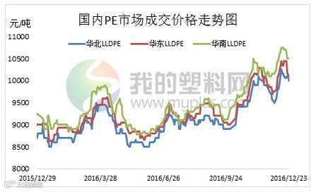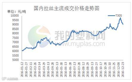 根据我的塑料网真实成交数据显示,本周国内PP成交价格大幅走低。截止本周五拉丝主流价格在8900-9300元/吨,跌500元/吨。期货连续收跌,石化出厂价格下调,场内利空氛围明显。