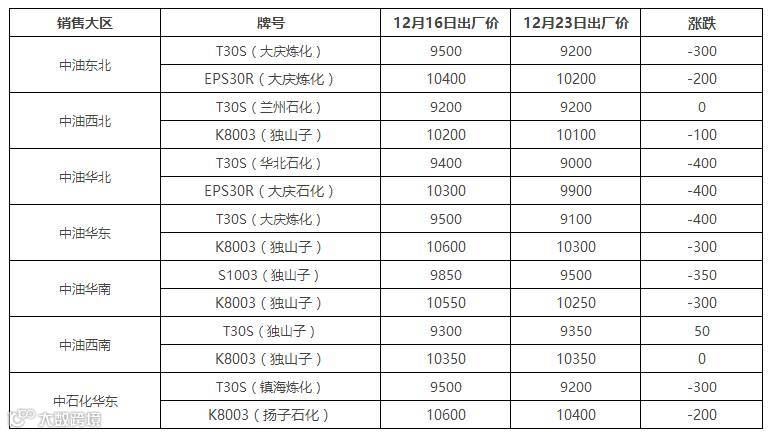 本周聚乙烯市场价格阴跌为主。周内线性期货整体走软,且石化多数下调出厂价格,市场利空因素较多,商家对后市信心不足,报盘多跟随走跌,整体交投气氛偏淡。