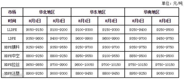 今日国内PE市场价格多数上涨,个别地区高价走软。各大区部分线性和高压上涨50-150元/吨,部分低压小涨50-100元/吨,华东个别线性和低压价格过高,回落50-100元/吨。线性期货震荡上涨,部分石化延续调涨出厂价,商家随行高报。但下游工厂抵触高价原料,导致商家出货不畅,部分小幅让利。午后现货成交欠佳,原料价格小幅回落。目前国内LLDPE主流报价在9100-9500元/吨。