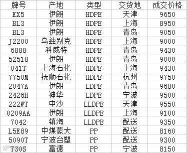 导读:我的塑料网今日成交数据显示:PE市场继续走高,下游坚持刚需;PP市场石化上调放缓,市场价格涨幅收窄;PVC市场企业涨价,市场报价跟随走高。