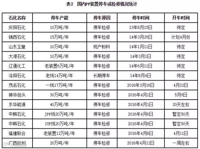 2.3 国内石化企业停车装置统计