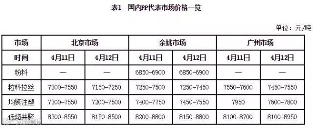 1 今日国内PP代表市场报价参考