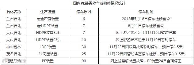 我的塑料网11月25日报道:本期石化库存延续上涨趋势。石化检修情况较上周明显增多,主要是突发故障临时停车频率增加,涉及年产能在175万吨,损失产量在2.32万吨。本周部分石化开始下调出厂价,加上期货连续低位震荡,挫伤商家交易心态,下游需求多延续平淡,采购以少量刚需为主。