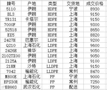附表:“我的塑料网”今日主流牌号成交价格一览表