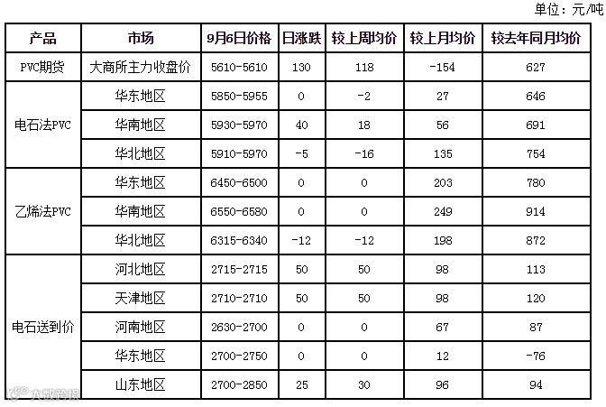 今日期货上涨,华南PVC市场跟随走高。但需求平淡,PVC生产企业接单不畅,价格持稳中个别让利出货。业者对市场走势出现分歧,但多表示难有回调空间,谨慎操作。密切关注G20结束后,华东市场交投恢复情况。预计明天5型普通电石料,华东市场主流自提报价在5850-5950元/吨,华南市场主流自提报价在5950-6000元/吨。