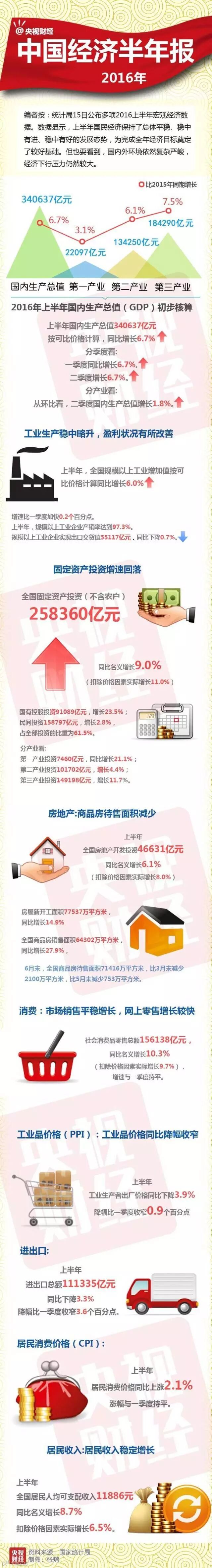 2016中国经济半年报:GDP增速6.7%