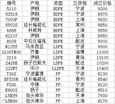 今日国内PE现货市场观望气氛浓郁,报盘大稳小动。临近月底,石化企业多挺价为主,部分因货源不多提前停销核算,市场流通领域现货不多;但早间线性期货表现弱势,市场多观望为主,线性与低压品种调整幅度多在50元/吨以内,高压货少价挺,多数报盘在10000元/吨以上。
