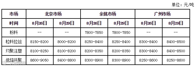 石化多数大区出厂价平稳,对市场形成一定的成本支撑。期货远月合约大幅走低,进一步打击下游接货意愿。下游看空后市,谨慎观望,市场成交冷清。受下游需求制约及石化挺价影响,预计近期市场延续窄幅盘整走势,成交低迷难改。以华东市场为例,余姚市场拉丝主流价格在8200-8400元/吨。建议业者加强对石化销售政策、下游开工情况及PP期货的关注力度。