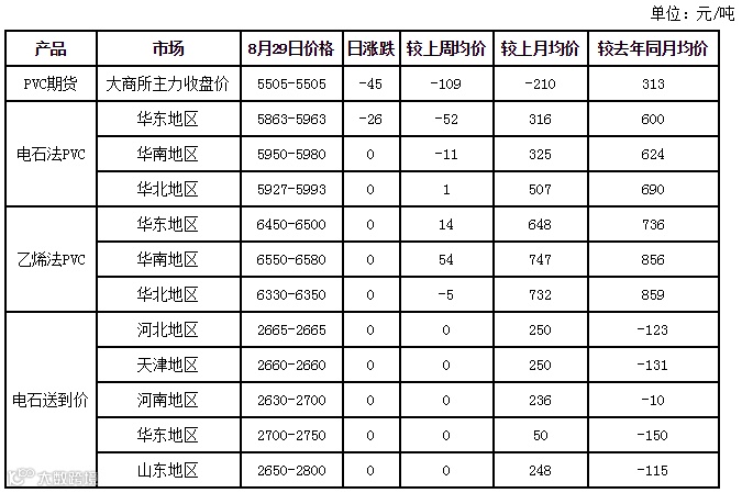 华南地区PVC气氛平淡,需求一般,交投不温不火,主流价格波动不大,部分成交价不断松动。普通5型电石料主流成交价5930-5970元/吨自提,天业价格略高,盐湖/三联/海纳5型报5900元/吨自提,东方希望/亿利5型报5960元/吨 自提,中泰/君正/天湖5型报6000元/吨自提,天辰5型报6150元/吨自提,天业8型6280元/吨自提,天业3型报6350元/吨自提。乙烯料价 格稳定,主流6530-6600元/吨自提,大沽800报6570元/吨自提,大沽1300型报6630元/吨自提。