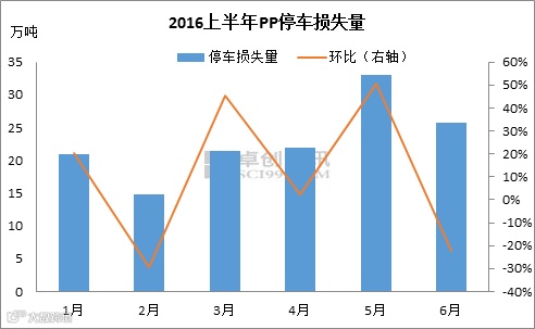 上半年PP装置停车检修从3月份开始逐渐增加,5月份停车损失量达到上半年最高,约33.08万吨。二季度一般是生产企业传统检修旺季,今年表现更加明显。除茂名石化、中韩石化、镇海炼化、燕山石化等装置停车大修外,宁夏宝丰、神华宁煤、河北海伟、东华能源扬子江石化等煤化工、PDH企业也安排了大修。大量装置的停车检修,加之期货不断上涨的配合,导致6月份市场现货供应出现偏紧的局面。