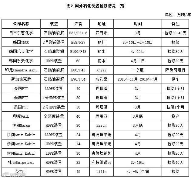 3.近期装置检修情况一览
