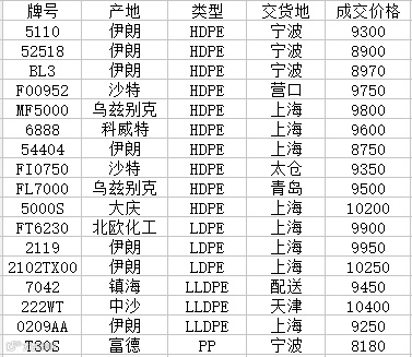我的塑料网今日热门牌号成交价格