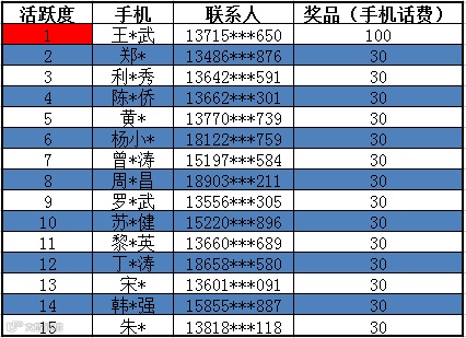 我们会公布下周活跃用户排名!兴许您的努力也会获得收获。