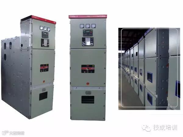 (1)金属封闭铠装式开关柜(用字母K来表示)主要组成部件(例如:断路器、互感器、母线等)分别装在接地的用金属隔板隔开的隔室中的金属封闭开关设备。如KYN28A-12型高压开关柜。