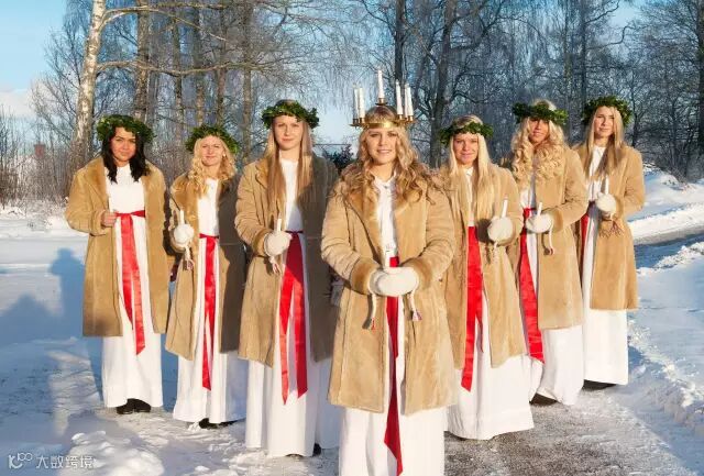 在地处斯堪的纳维亚半岛的国家中,大多数人会在每年的12月13日庆祝圣露西亚(St. Lucia)(又称圣露西St. Lucy)。当初,这个习俗只是在瑞典才有,不过19世纪中叶,丹麦和芬兰也开始在每年的12月13日庆祝圣卢西亚。